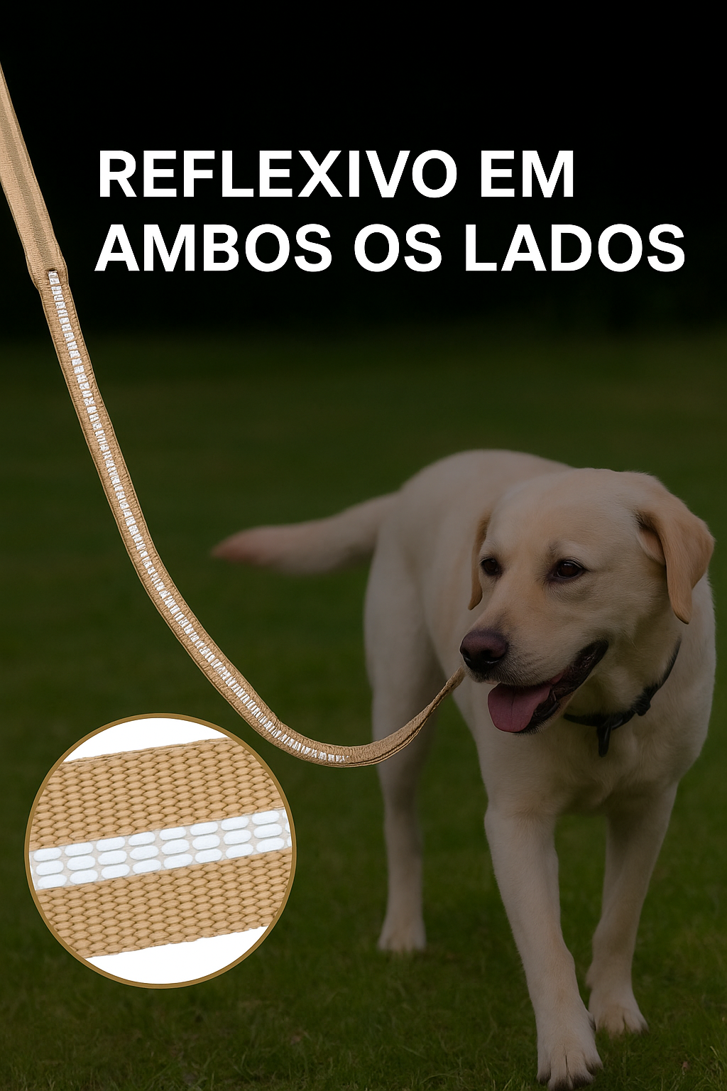 E mais: o sistema reflexivo de alta visibilidade garante segurança extra em passeios noturnos ou em áreas com pouca iluminação. Seu cão ficará sempre visível, e você, tranquilo!